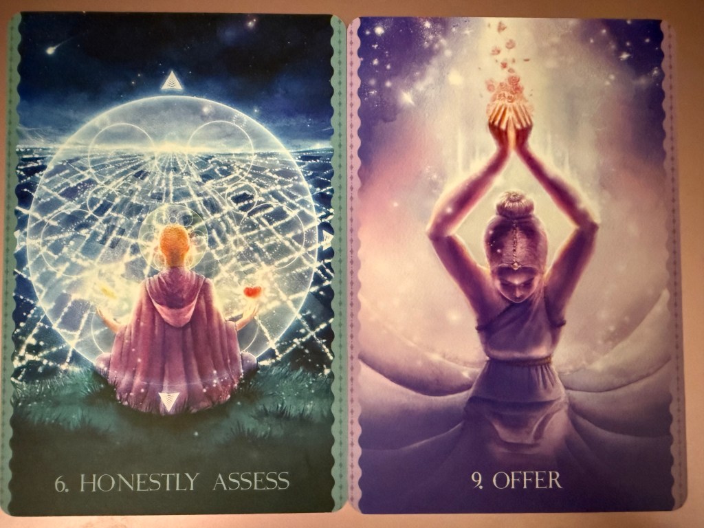 The cards for this week are Honestly Assess and Offer (from the Cosmic Dancer Oracle Deck).